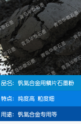 華泰石墨的釩氮合金用鱗片石墨粉是生產釩氮合金的重要原料,鱗片石墨粉和其他生產原料制成胚件,在常壓、氮氣氛保護下,